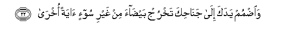 22. Waodmum yadaka ila janahika takhruj baydaa min ghayri soo-in ayatan okhra