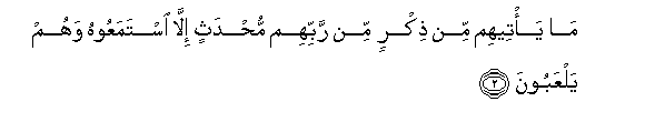 2. Ma ya/teehim min thikrin min rabbihim muhdathin illa istamaAAoohu wahum yalAAaboona