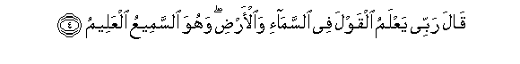 4. Qala rabbee yaAAlamu alqawla fee alssama-i waal-ardi wahuwa alssameeAAu alAAaleemu