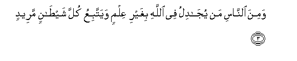 3. Wamina alnnasi man yujadilu fee Allahi bighayri AAilmin wayattabiAAu kulla shaytanin mareedin