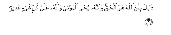 6. Thalika bi-anna Allaha huwa alhaqqu waannahu yuhyee almawta waannahu AAala kulli shay-in qadeerun