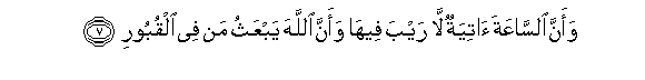 7. And verily the Hour will come: there can be no doubt about it, or about (the fact) that Allah will raise up all who are in the graves.