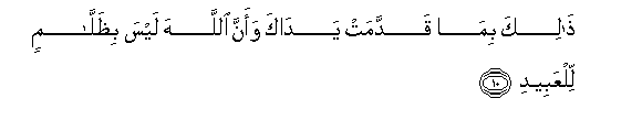 10. Thalika bima qaddamat yadaka waanna Allaha laysa bithallamin lilAAabeedi