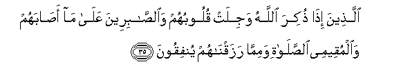 35. Allatheena itha thukira Allahu wajilat quloobuhum waalssabireena AAala ma asabahum waalmuqeemee alssalati wamimma razaqnahum yunfiqoona