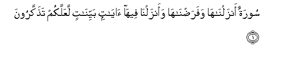 1. A sura which We have sent down and which We have ordained in it have We sent down Clear Signs, in order that ye may receive admonition.