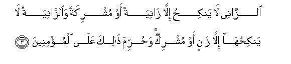 3. Alzzanee la yankihu illa zaniyatan aw mushrikatan waalzzaniyatu la yankihuha illa zanin aw mushrikun wahurrima thalika AAala almu/mineena