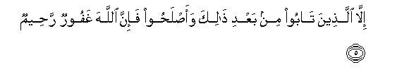 5. Unless they repent thereafter and mend (their conduct); for Allah is Oft-Forgiving, Most Merciful.