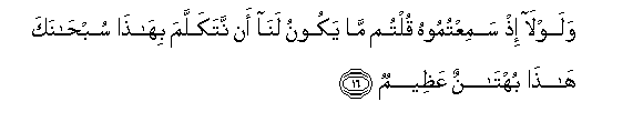 16. Walawla ith samiAAtumoohu qultum ma yakoonu lana an natakallama bihatha subhanaka hatha buhtanun AAatheemun
