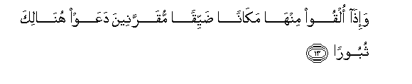 13. Wa-itha olqoo minha makanan dayyiqan muqarraneena daAAaw hunalika thubooran