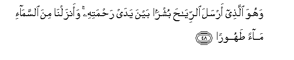 48. And He it is Who sends the winds as heralds of glad tidings, going before His mercy, and We send down pure water from the sky,--