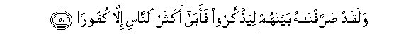 50. Walaqad sarrafnahu baynahum liyaththakkaroo faaba aktharu alnnasi illa kufooran