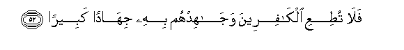 52. Fala tutiAAi alkafireena wajahidhum bihi jihadan kabeeran