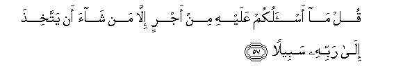 57. Qul ma as-alukum AAalayhi min ajrin illa man shaa an yattakhitha ila rabbihi sabeelan