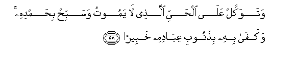 58. Watawakkal AAala alhayyi allathee la yamootu wasabbih bihamdihi wakafa bihi bithunoobi AAibadihi khabeeran