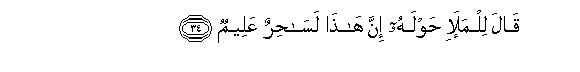 34. Qala lilmala-i hawlahu inna hatha lasahirun AAaleemun