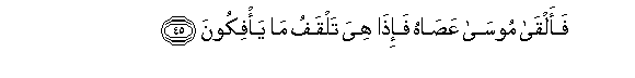 45. Faalqa moosa AAasahu fa-itha hiya talqafu ma ya/fikoona