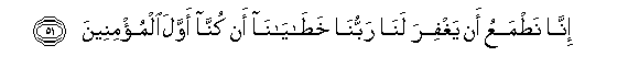 51. Inna natmaAAu an yaghfira lana rabbuna khatayana an kunna awwala almu/mineena