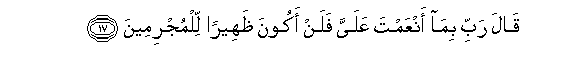 17. Qala rabbi bima anAAamta AAalayya falan akoona thaheeran lilmujrimeena