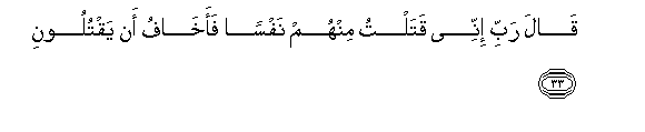 33. Qala rabbi innee qataltu minhum nafsan faakhafu an yaqtulooni