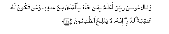 37. Moses said: "My Lord knows best who it is that comes with guidance from Him and whose end will be best in the Hereafter: certain it is that the wrong-doers will not prosper."