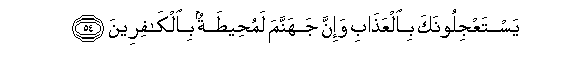 54. YastaAAjiloonaka bialAAathabi wa-inna jahannama lamuheetatun bialkafireena