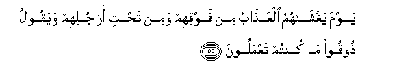 55. Yawma yaghshahumu alAAathabu min fawqihim wamin tahti arjulihim wayaqoolu thooqoo ma kuntum taAAmaloona