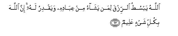 62. Allahu yabsutu alrrizqa liman yashao min AAibadihi wayaqdiru lahu inna Allaha bikulli shay-in AAaleemun