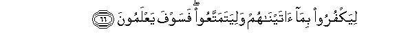 66. Liyakfuroo bima ataynahum waliyatamattaAAoo fasawfa yaAAlamoona