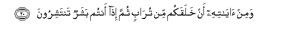 20. Wamin ayatihi an khalaqakum min turabin thumma itha antum basharun tantashiroona