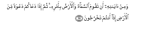 25. Wamin ayatihi an taqooma alssamao waal-ardu bi-amrihi thumma itha daAAakum daAAwatan mina al-ardi itha antum takhrujoona