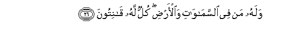26. Walahu man fee alssamawati waal-ardi kullun lahu qanitoona