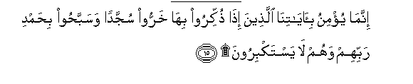 15. Innama yu/minu bi-ayatina allatheena itha thukkiroo biha kharroo sujjadan wasabbahoo bihamdi rabbihim wahum la yastakbiroona