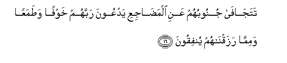 16. Tatajafa junoobuhum AAani almadajiAAi yadAAoona rabbahum khawfan watamaAAan wamimma razaqnahum yunfiqoona