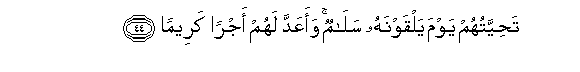 44. Tahiyyatuhum yawma yalqawnahu salamun waaAAadda lahum ajran kareeman