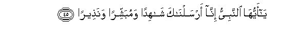 45. Ya ayyuha alnnabiyyu inna arsalnaka shahidan wamubashshiran wanatheeran