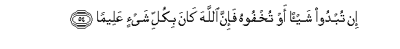 54. In tubdoo shay-an aw tukhfoohu fa-inna Allaha kana bikulli shay-in AAaleeman
