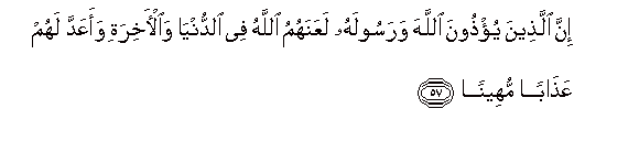 57. Those who annoy Allah and His Messenger - Allah has cursed them in this World and in the Hereafter, and has prepared for them a humiliating Punishment.