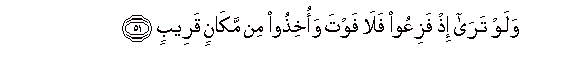 51. Walaw tara ith faziAAoo fala fawta waokhithoo min makanin qareebin