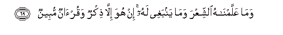 69. Wama AAallamnahu alshshiAAra wama yanbaghee lahu in huwa illa thikrun waqur-anun mubeenun