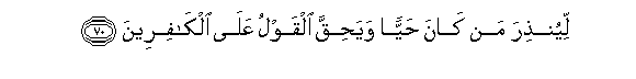 70. Liyunthira man kana hayyan wayahiqqa alqawlu AAala alkafireena