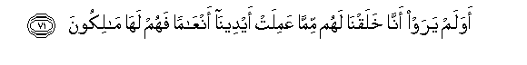71. Awa lam yaraw anna khalaqna lahum mimma AAamilat aydeena anAAaman fahum laha malikoona