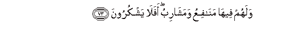 73. Walahum feeha manafiAAu wamasharibu afala yashkuroona