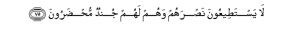 75. La yastateeAAoona nasrahum wahum lahum jundun muhdaroona