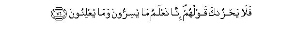 76. Fala yahzunka qawluhum inna naAAlamu ma yusirroona wama yuAAlinoona