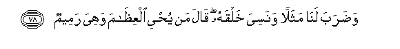 78. Wadaraba lana mathalan wanasiya khalqahu qala man yuhyee alAAithama wahiya rameemun