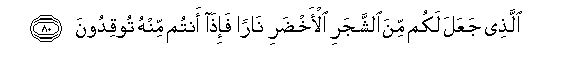 80. Allathee jaAAala lakum mina alshshajari al-akhdari naran fa-itha antum minhu tooqidoona