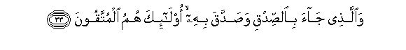33. Waallathee jaa bialssidqi wasaddaqa bihi ola-ika humu almuttaqoona