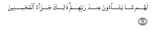 34. Lahum ma yashaoona AAinda rabbihim thalika jazao almuhsineena