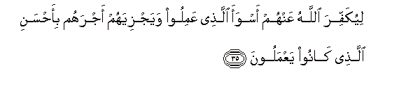 35. Liyukaffira Allahu AAanhum aswaa allathee AAamiloo wayajziyahum ajrahum bi-ahsani allathee kanoo yaAAmaloona