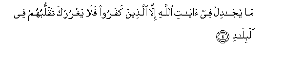 4. Ma yujadilu fee ayati Allahi illa allatheena kafaroo fala yaghrurka taqallubuhum fee albiladi